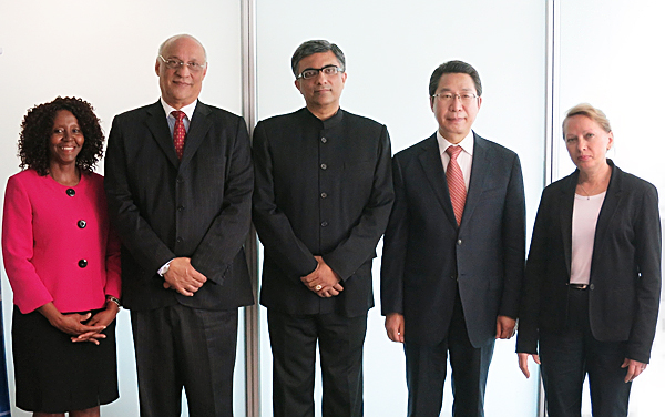出席第四届金砖国家知识产权局局长会议的各国(左起南非、巴西、印度、中国、俄罗斯)局长