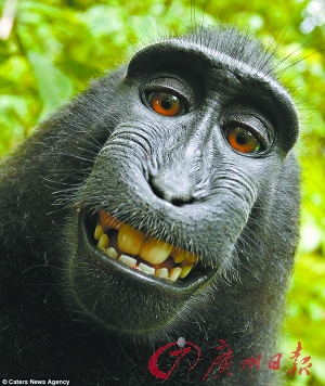 这只印度尼西亚猴子4年前拾到斯莱特的照相机,无意摆弄间拍下了几张咧嘴大笑的滑稽自拍照,后来被斯莱特出书公布。如果原告胜诉,这将是史上首次有动物被判定拥有知识产权。