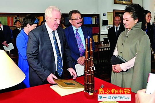 彭丽媛赠送中国乐器笙。