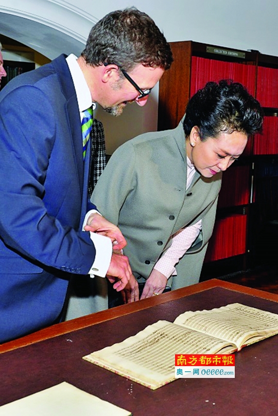彭丽媛参观莫扎特手稿。