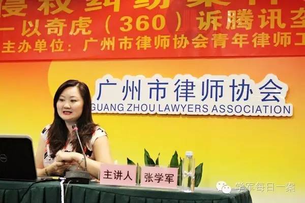 2015年9月16日,廣州市律師協會青年律師工作委員會舉辦第二十九期青年律師大講堂“網絡侵權糾紛案件處理思路——以奇虎(360)訴騰訊壟斷案為例”講座。我非常荣幸應邀擔任本次講座主講嘉賓。市律協青工委主任畢亞林、副主任黎誌淩、委員鄧柏濤及蔣霆與來自全市各律師事務所的120多名律師參加了本次活動。講座由青工委委員黎葉律師主持。现律协青工委将该次演讲的内容整理为文字,做了非常有价值的保存工作,特将该次讲演的内容在此登载,供大家参考借鉴和批评指正。