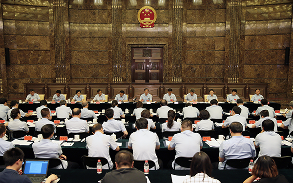 周强指出,推动京津冀协同发展,是党中央、国务院在新的历史条件下作出的重大决策部署,是应对我国面临的各种错综复杂的矛盾与挑战、促进环渤海经济区发展、带动华北乃至整个北方腹地发展的重大国家战略,对于协调推进“四个全面”战略布局、实现“两个一百年”奋斗目标和中华民族伟大复兴的中国梦,具有重大现实意义和深远历史意义。要认真贯彻落实习近平总书记重要指示精神,贯彻落实“十三五”规划发展纲要和《京津冀协同发展规划纲要》,按照《最高人民法院关于为京津冀协同发展提供司法服务和保障的意见》要求,充分发挥审判职能作用,围绕中心、服务大局,自觉担负起为京津冀协同发展提供司法服务和保障的职责使命。