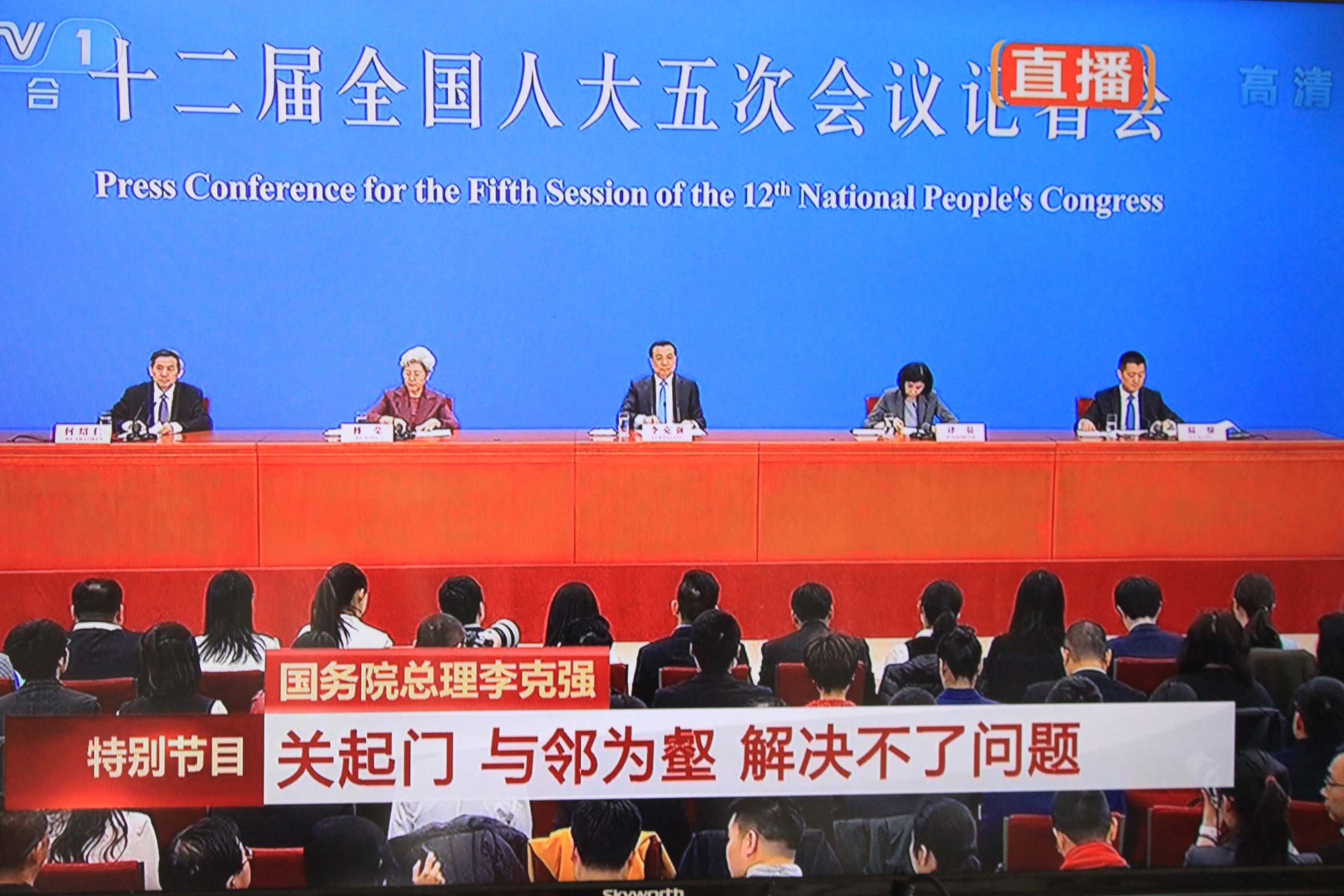 十二届全国人大五次会议记者会 关起门 与邻为壑 解决不了问题记者媒体